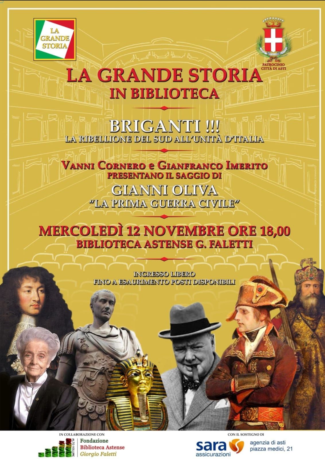 Mercoledì 12 novembre alle 18 nuovo appuntamento con la Grande Storia in Biblioteca. Ospite Gianni Oliva, che con Vanni Cornero e Gianfranco Imerito presenta il saggio “La prima guerra civile – Rivolta e repressione nel Mezzogiorno dopo l’Unità d’Italia”.
