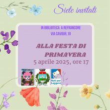 Vi aspettiamo Numerosi presso la Biblioteca Comunale di Refrancore per la Festa di Primavera! Durante l’incontro ci saranno letture ad alta voce a tema primavera, musica , laboratorio creativo e merenda insieme.