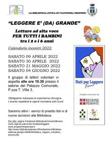 Letture ad alta voce per tutti i bambini tra 2 e 6 anni, presso il salone del palazzo comunale di Valfenera.