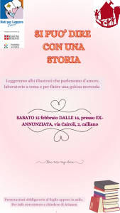 VI ASPETTIAMO SABATO 15 FEBBRAIO ALLE 16  per letture ad alta voce sul tema dell’amore, laboratorio e merenda.