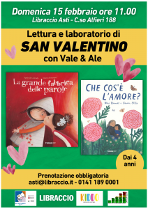 Insieme faremo letture ad alta voce + laboratorio a tema amore e sentimenti in occasione di San Valentino.