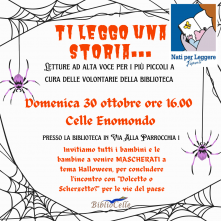 Per festeggiare Halloween insieme il 30 Ottobre alle 16, presso la biblioteca di Via alla Parrocchia, Lettura in Maschera e passeggiata ‘Dolcetto o Scherzetto?’